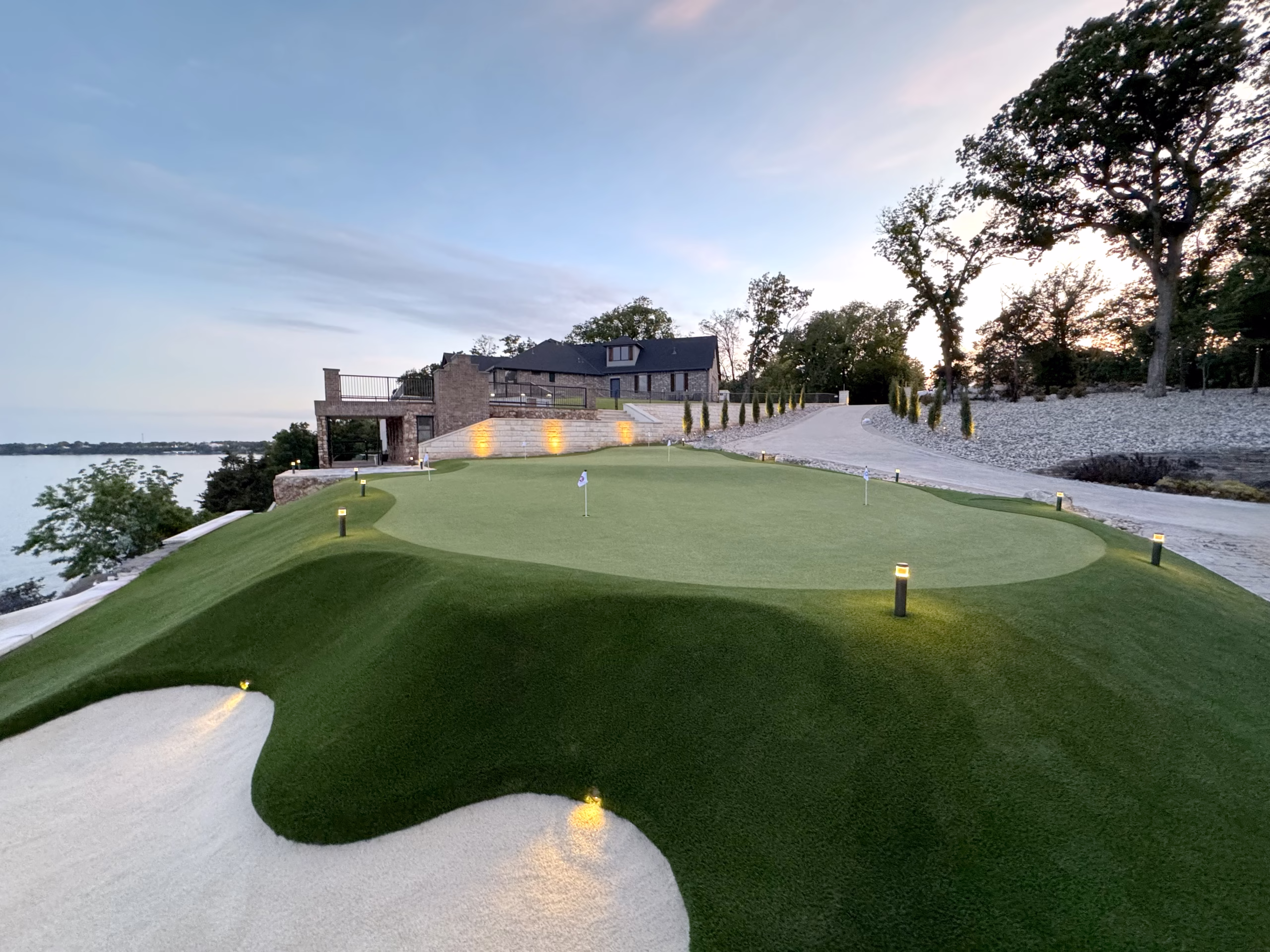 At Celebrity Greens Alexandria, we offer a wide variety of turf services, from custom residential and commercial putting greens to sports fields, dog runs, playground surfaces, and complete landscape enhancements. Our putting greens can be tailored with features such as sand traps, stacked sod bunkers, custom lighting, water features, and more to fit your unique space.