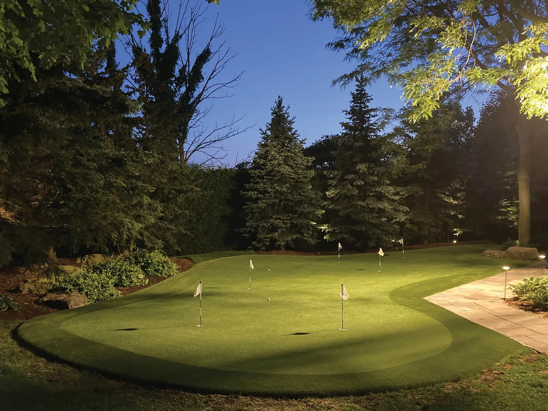 We specialize in custom golf green design, complete with optional features like sand traps, stacked sod bunkers, water hazards, and custom lighting. Indoors or outdoors, our synthetic golf greens offer realistic ball roll, top-tier drainage, and minimal maintenance.